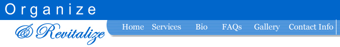 Specializing in residential and home office organizing, Organize & Revitalize offers a variety of organizing services to help transform your space into a functional, productive and harmonious haven, allowing you the time to focus on what's most important in your life.